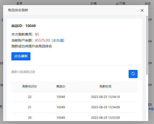 可在商家后台刷新商品排名。