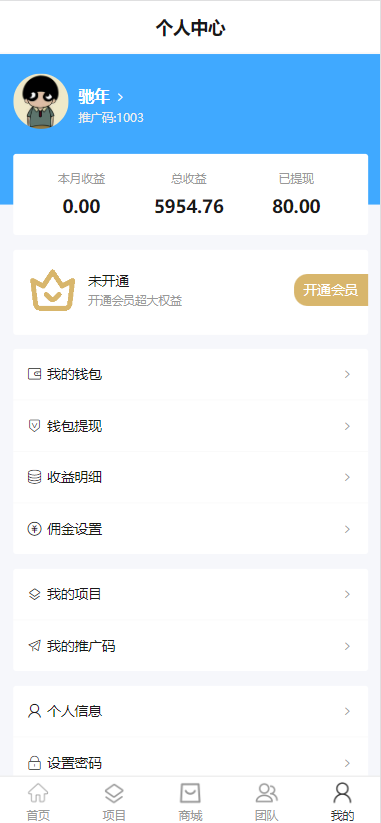 用户购买会员,有分佣功能;