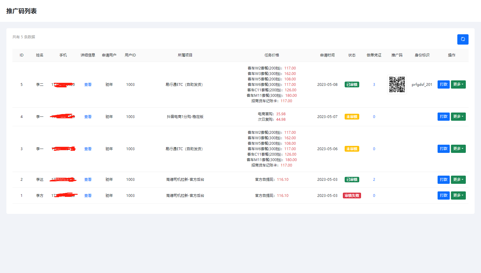 支持手动打款提现;